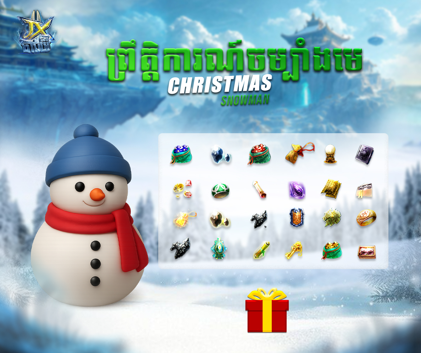 • នៅពេលដែលប្រហារ Christmas Snowman រួចហើយនិងមានធ្លាក់ Christmas Chest ​ចំនួន200 ។